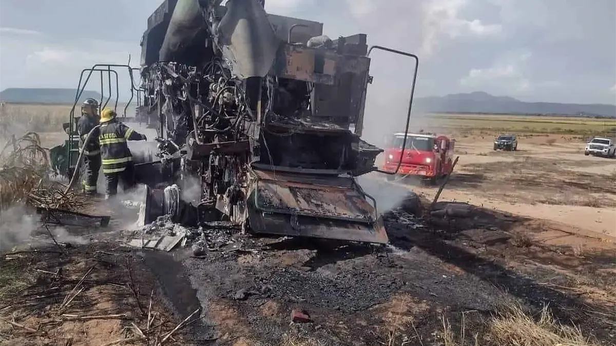 Un cortocircuito provocó el incendio de una trilladora, la tarde de este viernes, en el municipio de Angostura, específicamente, en la colonia Sinaloa.