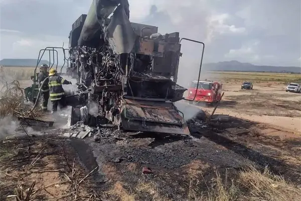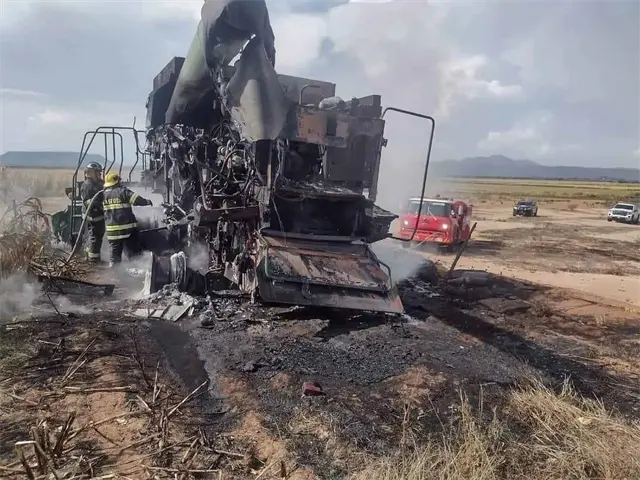 Cortocircuito provoca incendio en trilladora, en Angostura