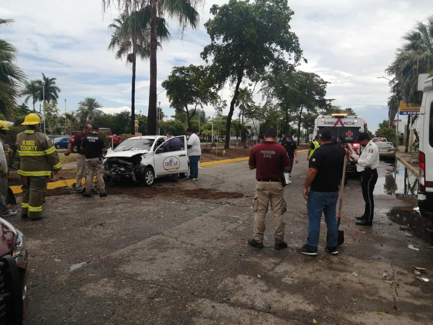 Un accidente automovilístico, tipo carambola, ocurrido en la zona centro de Los Mochis, dejó como saldo a dos personas lesionadas.