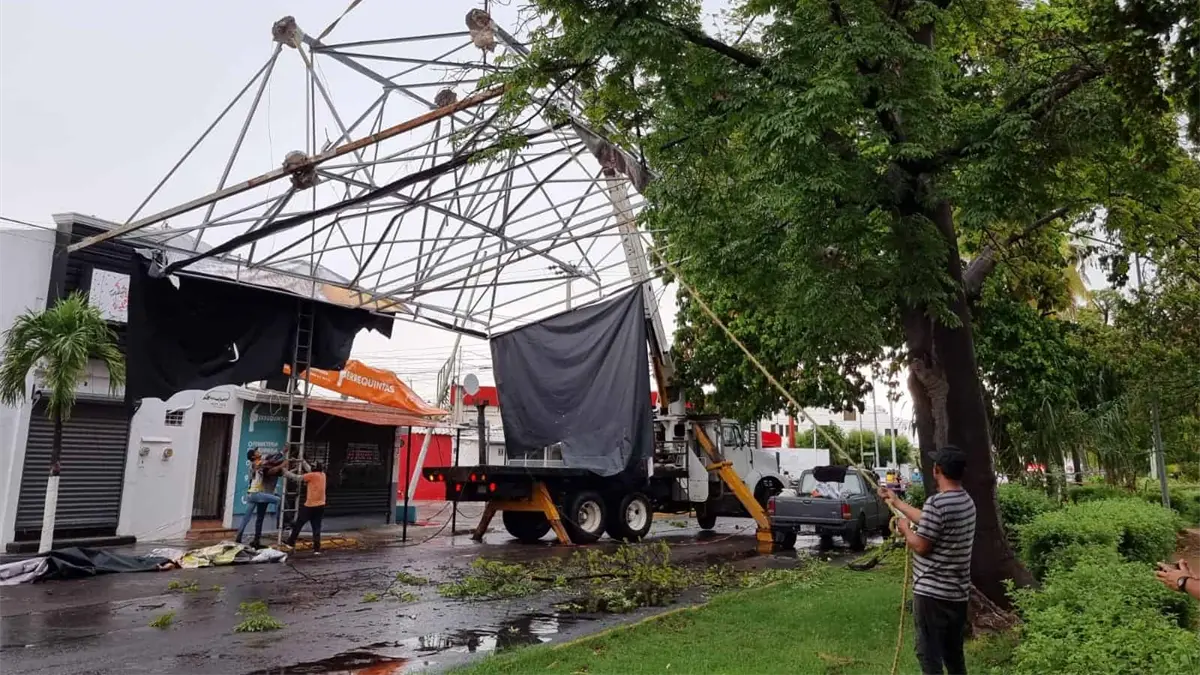 Lluvia azota Culiacán y derriba otro espectacular