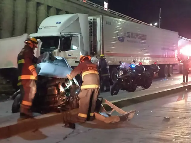 >El conductor de un automóvil se impactó contra la caja de un tráiler tras perder el control del volante justo cuando circulaba en el puente.