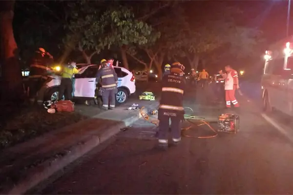 >La joven, vecina del sector, quedó prensada en su vehículo hasta que fue rescatada por Bomberos Culiacán y llevada a un hospital.