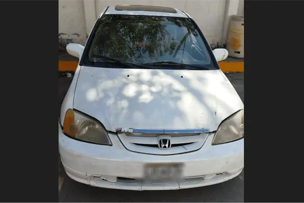 Según informes, el detenido fue identificado como Renato, de 27 de años de edad, quien conducía un vehículo Honda Civic, color blanco, con placas del estado de Chihuahua, mismo que al cotejar los datos resultó con reporte de robo del año 2016 en el estado de Chihuahua.