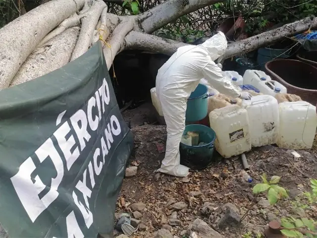 El 9 de julio, los agentes de las Fuerzas Armadas se movilizaron al poblado El Tecomate, en donde localizaron uno de los campamentos, en el que se aseguraron 234 recipientes de diferentes capacidades, 5 reactores de síntesis orgánica y 2 condensadores.