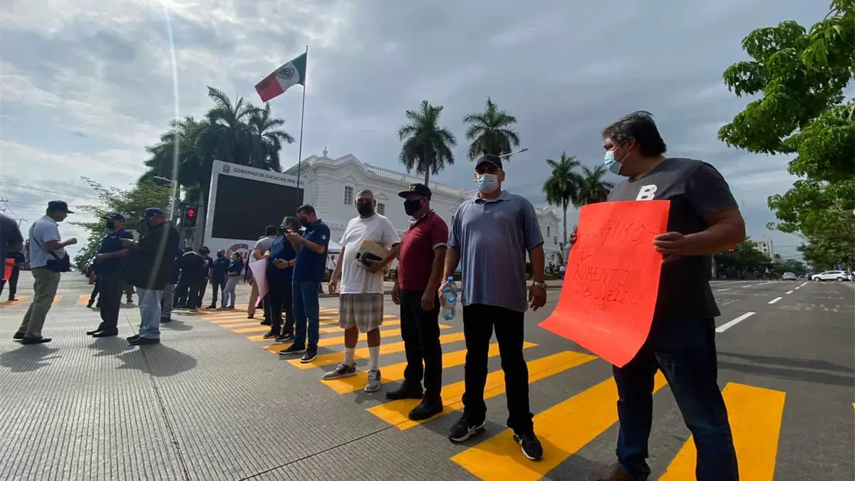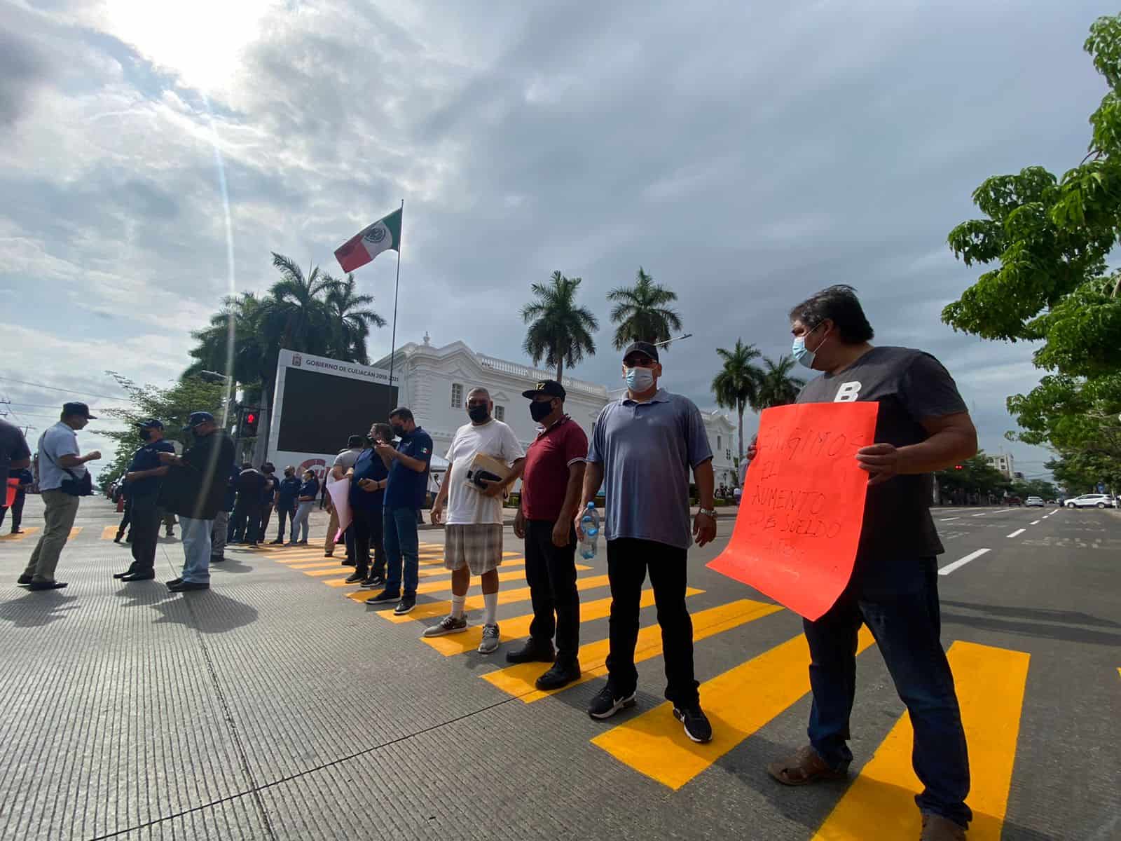 Más de 50 policías jubilados del colectivo «Guerreros Unidos» se manifestaron en las afueras del Ayuntamiento de Culiacán y cerraron la avenida Álvaro Obregón.