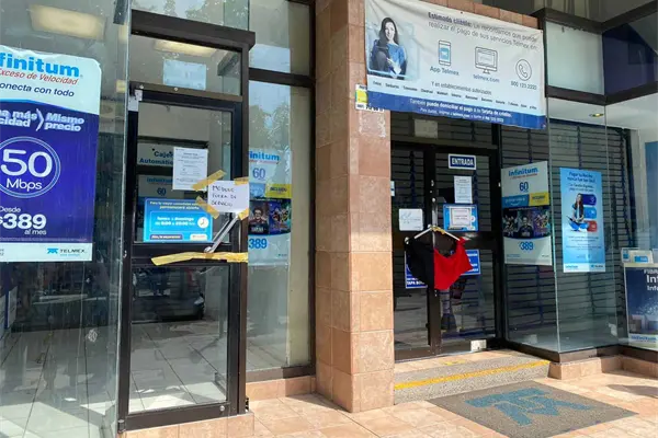 A nivel nacional todos los trabajadores de Teléfonos de México (Telmex) comenzaron una huelga indefinida por inconformidades laborales, por lo que los cajeros de pago y el atención a clientes está suspendida.