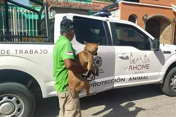 Elementos de la Unidad de Protección Animal de Protección Civil y Bomberos rescataron a un perro criollo en situación de aparente maltrato, el cual fue reportado a través de redes sociales.