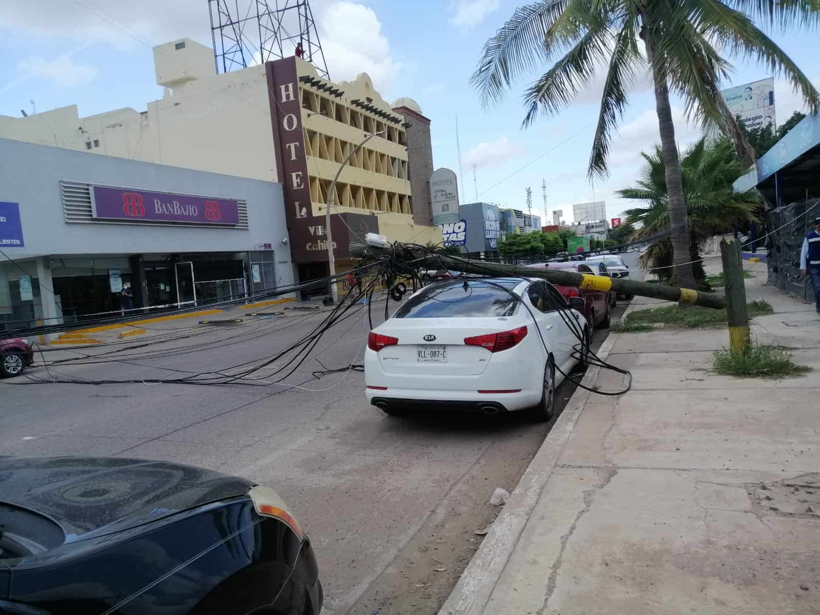 Según informes, un camión de carga circulaba con dirección al sur sobre la avendida Gabriel Leyva; sin embargo, en un descuido se llevó el cableado y provocó que tres postes de madera de una compañía de telefonía se vinieran abajo.