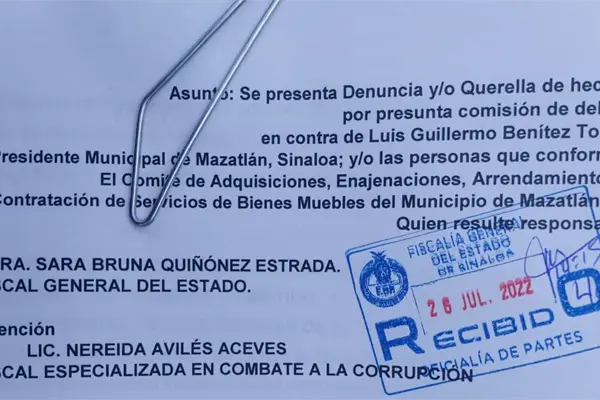 La denuncia fue presentada ante la Auditoría Superior del Estado contra el alcalde de Mazatlán y los integrantes del Comité de Adquisiciones del Ayuntamiento.