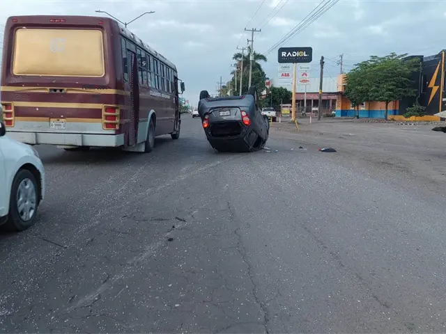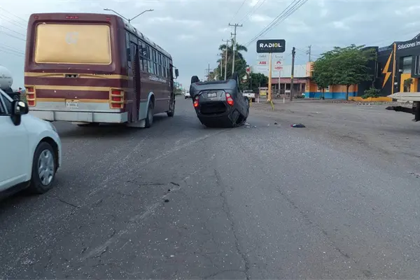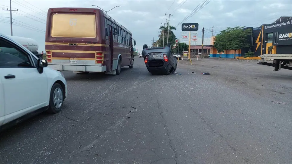 Vuelca vehículo tras choque con una revolvedora en Culiacán