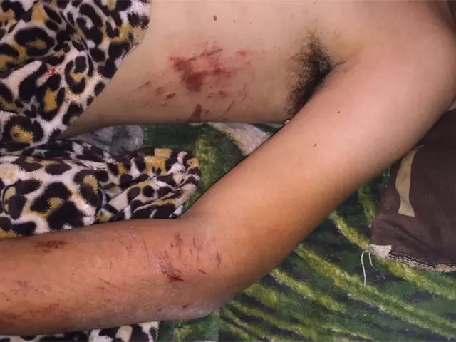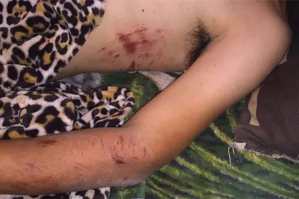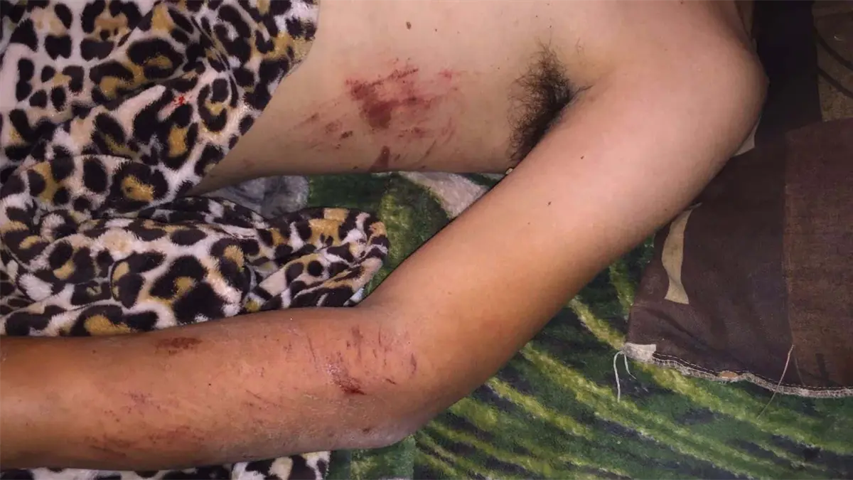 Este joven presenta fractura de uno de sus brazos, y golpes en todo el cuerpo.