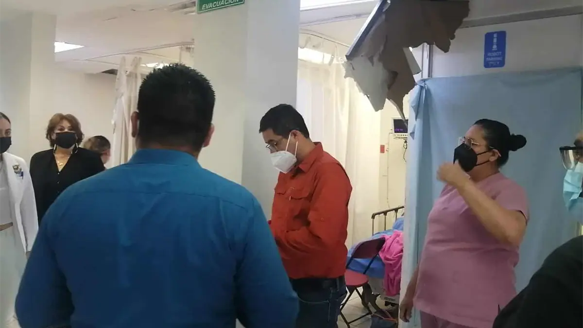 - Parte de los plafones del Hospital General colapsaron