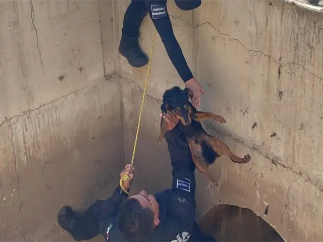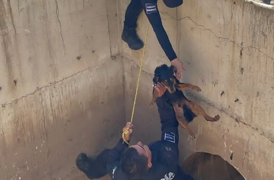 Posteriormente, al lugar acudieron elementos de la corporación, donde ubicaron al pequeño can, el cual a decir de la señora reportante, tenía ya por lo menos dos días en el interior de la cisterna sin tomar agua ni probar alimento.