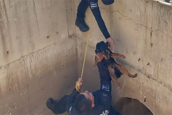 Policías de Culiacán rescatan perrito atrapado en interior de una cisterna
