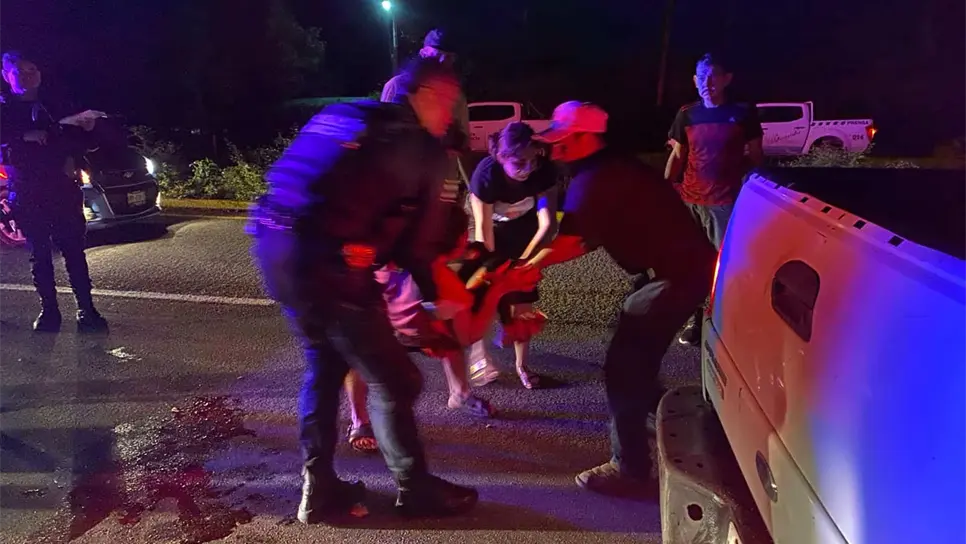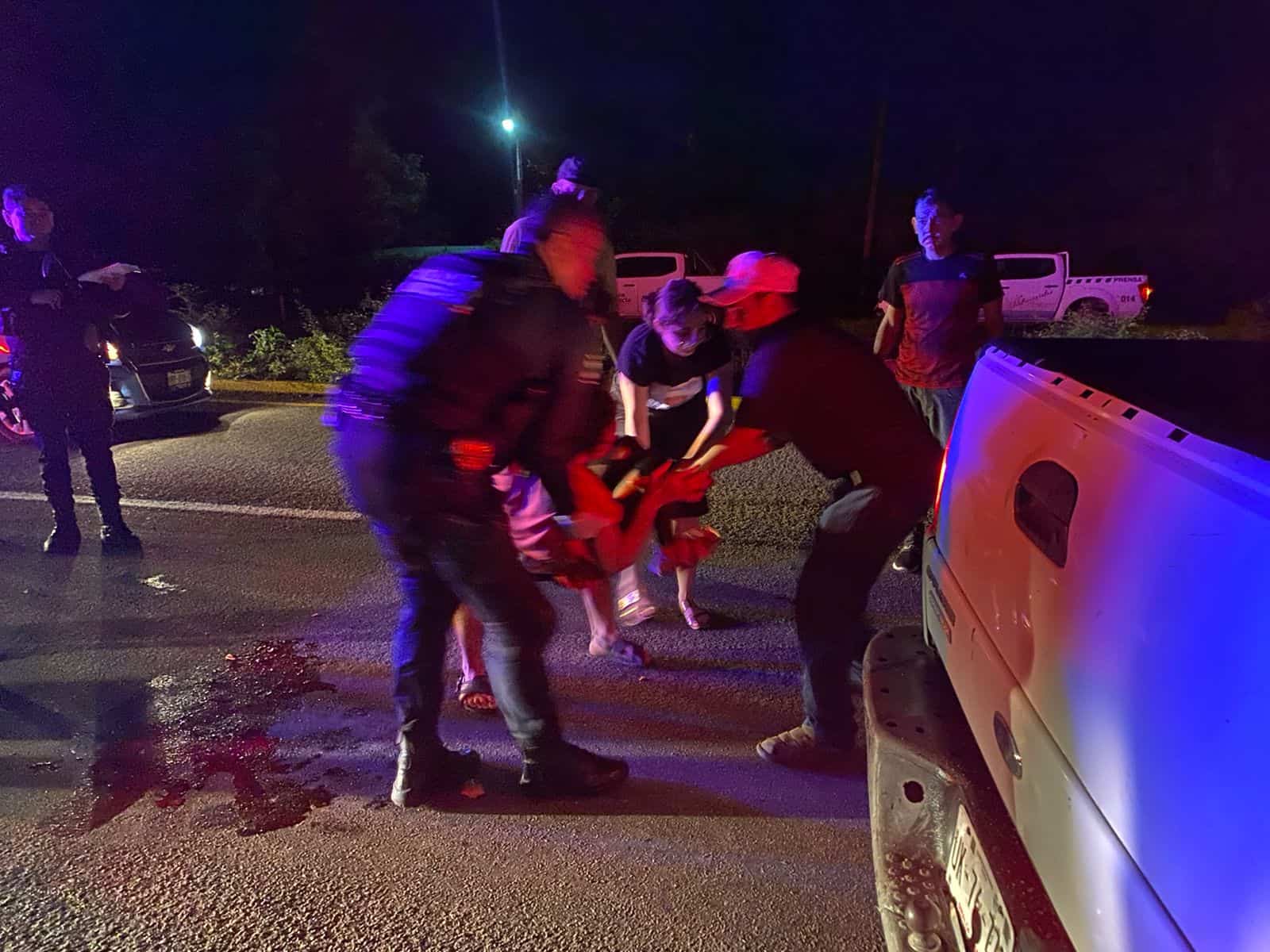 Aproximadamente a las 20:20 horas se informó sobre una persona sin vida sobre la carretera mencionada, justo frente al Rancho los Abuelos, por lo que policías se aproximaron al sitio, encontrando a la mujer viva, sin embargo, tenía ambas piernas fracturadas y golpes en el cuerpo, debido a que dos autos le pasaron por encima.