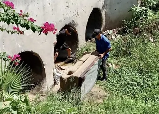 La Secretaría de Obras Públicas en Ahome retiró un sillón del dren ubicado en el Puente de Colegio Militar y la carretera Los Mochis - Ahome, en el fraccionamiento Del Real, después de un reporte ciudadano por taponamiento.