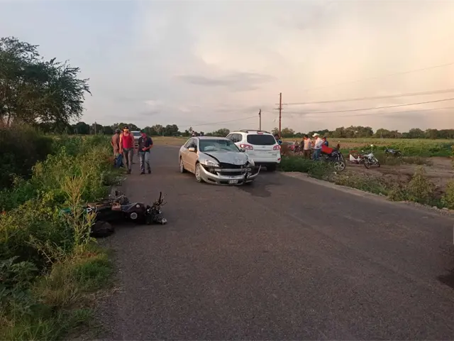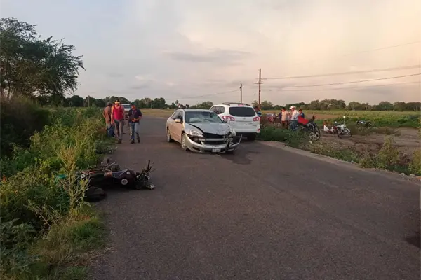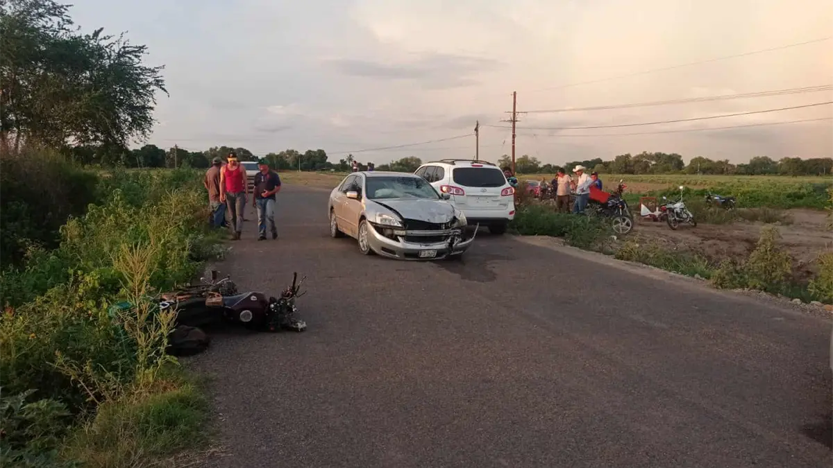 El incidente lo protagonizó un vehículo de la marca Honda, línea Accord, modelo 2006, con placas de circulación VLU752C de Sinaloa, conducido Hermenegildo Valenzuela de 45 años, de Guasavito y una motocicleta kurazai 2018, color tinto, sin placas, la cual era conducida por el varón que terminó lesionado.