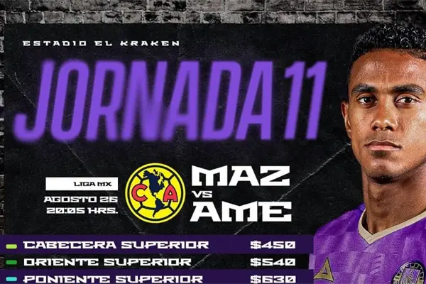 Mazatlán F.C. inicia la venta de boletos individuales para el encuentro frente a Las Águilas del América correspondiente a la jornada 11 del torneo Apertura 2022 de Liga MX a jugarse el próximo viernes 26 de agosto en punto de las 20:05 horas del Pacífico.