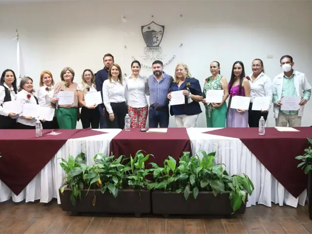 Quienes recibieron los reconocimientos son Juana Vargas Durán, Juana Heredia Armenta, María del Rosario Durán Silva, Mirna Castro Verduzco, Verónica Flores Espinoza, Rosa Elia García, Carmen Armida Pellegrini, María Guadalupe Chávez Orduño, Mireya Margarita Ávila Rodríguez y Juan Antonio Gatica Moreno.