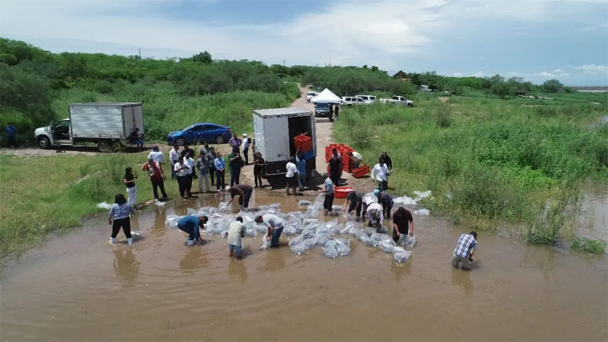 Siembran medio millón de alevines en la presa Eustaquio Buelna