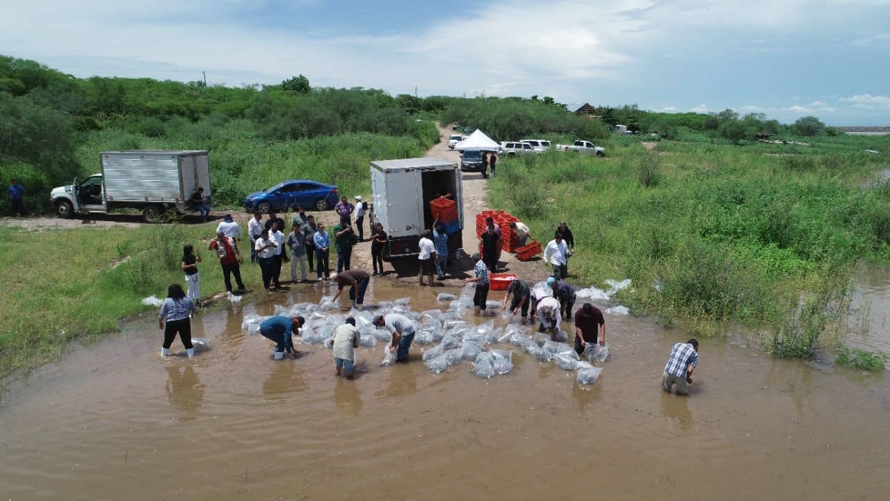 Por su parte, el presidente de la Federación de Cooperativas Pesqueras de la presa Eustaquio Buelna, José Carlos Castro Montoya, reconoció el apoyo de la repoblación y pidió que el otro medio millón de alevines que sembrarán, se depositen cuando culmine la temporada de lluvias.