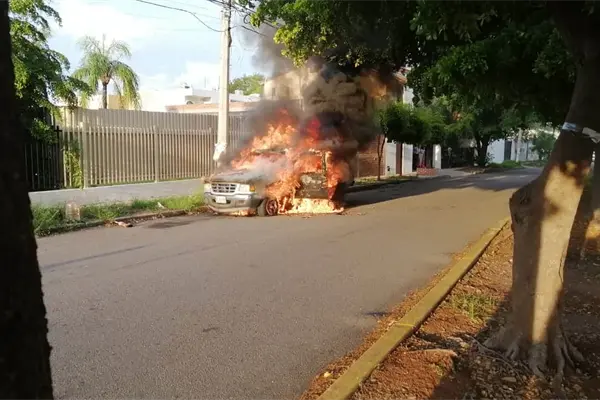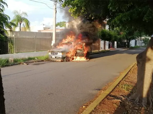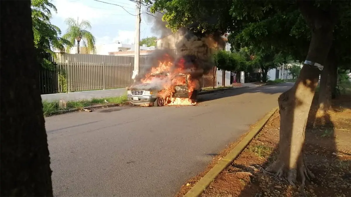 Una camiometa de la línea Ford Ranger doble cabina quedó en pérdida total tras incendiarse en la colonia Periodista, ubicada en el sector Las Quintas, en Culiacán.
