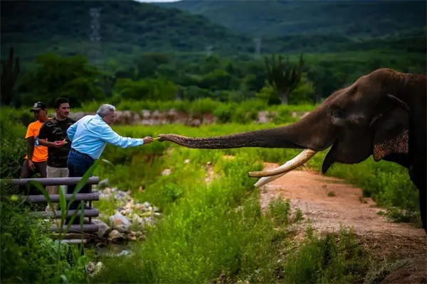 El Gobernador de Sinaloa, Rubén Rocha Moya, visitó por primera vez al elefante Big Boy en el santuario Ostok, sitio que alberga de forma temporal a otros animales.