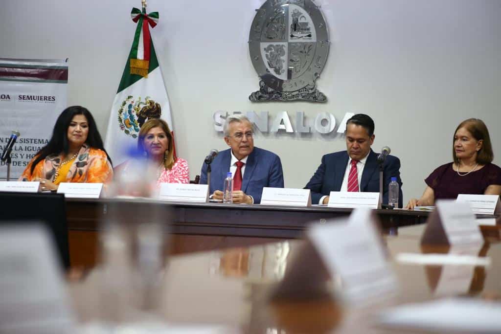 El Gobernador de Sinaloa, Rubén Rocha Moya, y la Secretaria de las Mujeres, Teresa Guerra Ochoa, iniciaron la sesión del Sistema Estatal para la Igualdad entre Mujeres y Hombres, con el fin de informar las medidas que han tomado en atención a las mujeres.
