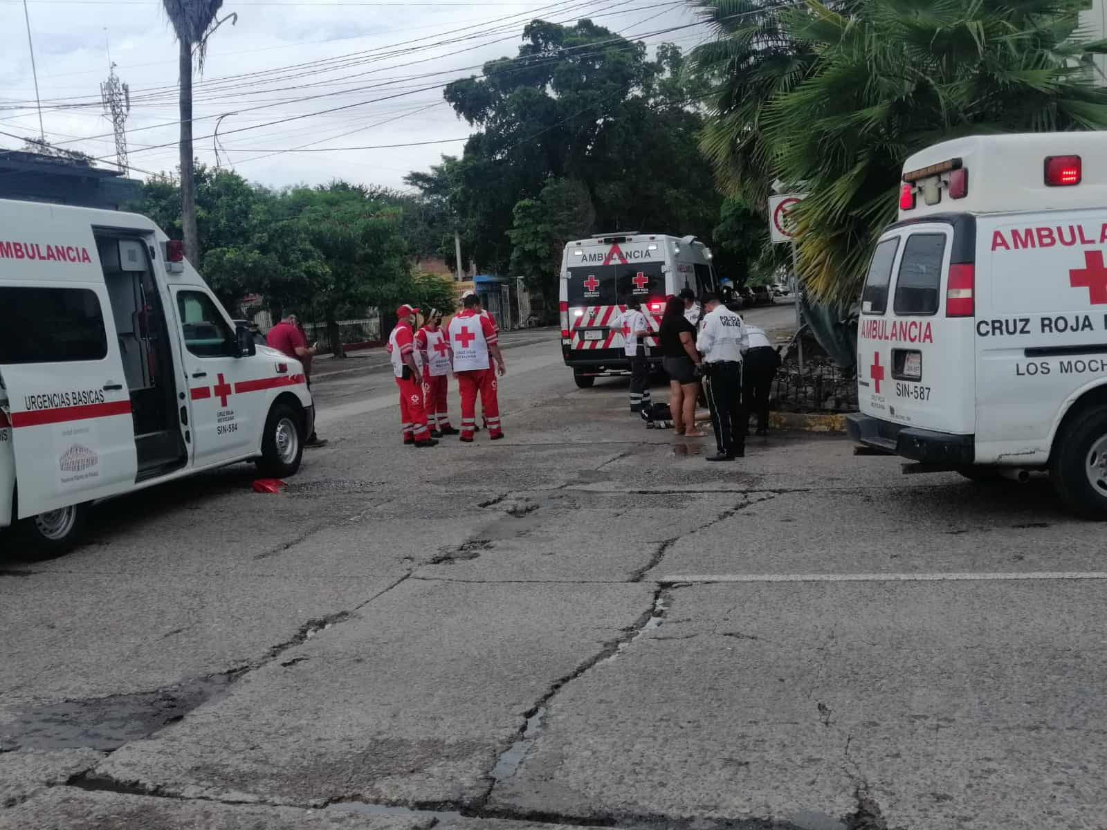 Dos jóvenes que viajaban en una motocicleta terminaron con lesiones y fueron llevados a recibir atención médica a un hospital tras chocar en transitado crucero de Los Mochis, contra una ambulancia de Cruz Roja, que en ese momento iba en camino a brindar atención prehospitalaria a una emergencia.