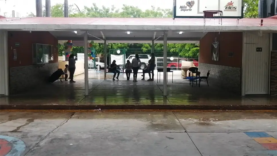 Completamente vacías de alumnos lucen las instituciones educativas de nivel básico de Ahome, pero eso sí llenos de agua, ante la copia lluvia que se registra en la región, esto durante el turno matutino.