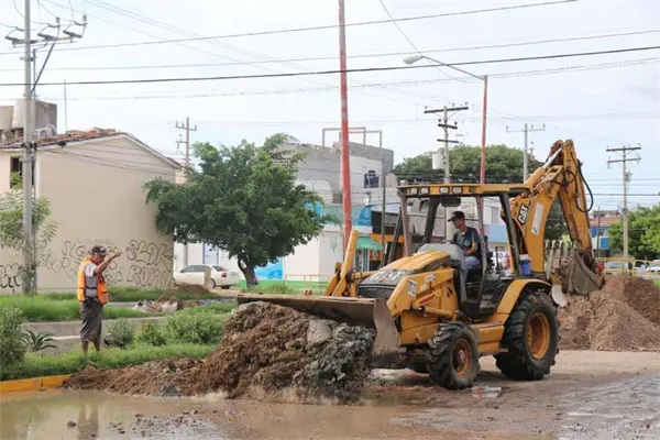 Rehabilitan tubería colapsada en Av. Delfines de Mazatlán