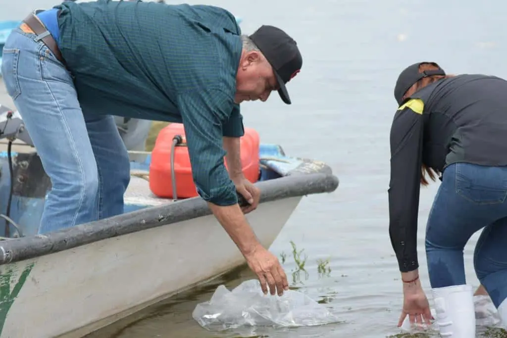 La entrega fue realizada por la Secretaria de Pesca en Sinaloa, Flor Emilia Guerra, estuvo presente en la resiembra acompañada del presidente municipal Gildardo Leyva Ortega y pescadores de las diferentes cooperativas.