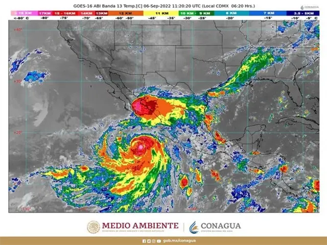 El Huracán «Kay» se fortalecerá a categoría 2 a medio día de este martes 6 de septiembre según el último pronóstico del Servicio Meteorológico Nacional (SMN), y se mantiene con trayectoria al nor-noroeste, ya cerca de Isla socorro al sur de Baja California.