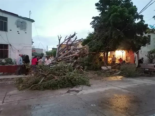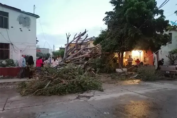 Asimismo, elementos de Protección Civil de Ahome acudieron para retirar el gran árbol que se cayó y dar salida de vehículos, pues este obstruía el acceso y vecinos pedían auxilio para poder trasladar principalmente a los adultos mayores, ya que todo el sector se quedó sin el servicio de luz.