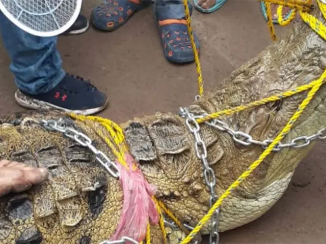 En el temor de la presencia del animal, cientos de habitantes del lugar se organizaron y se armaron de valor con alambres, cadenas y cuerdas para capturar al reptil.
