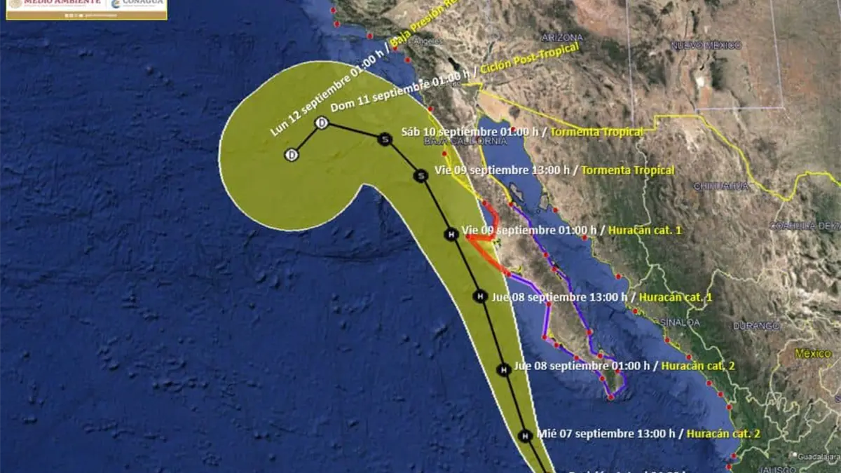 Se pronostican lluvias puntuales torrenciales en Baja California Sur; puntuales muy fuertes en Sinaloa; puntuales fuertes en Baja California y Sonora