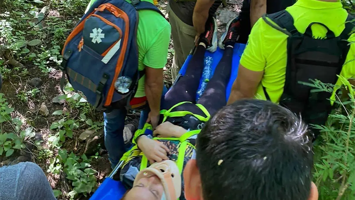 Este domingo, por la tarde, una mujer sufrió una fuerte caída de 6 metros de altura en las Cascadas de San Antonio, en el municipio de Culiacán.
