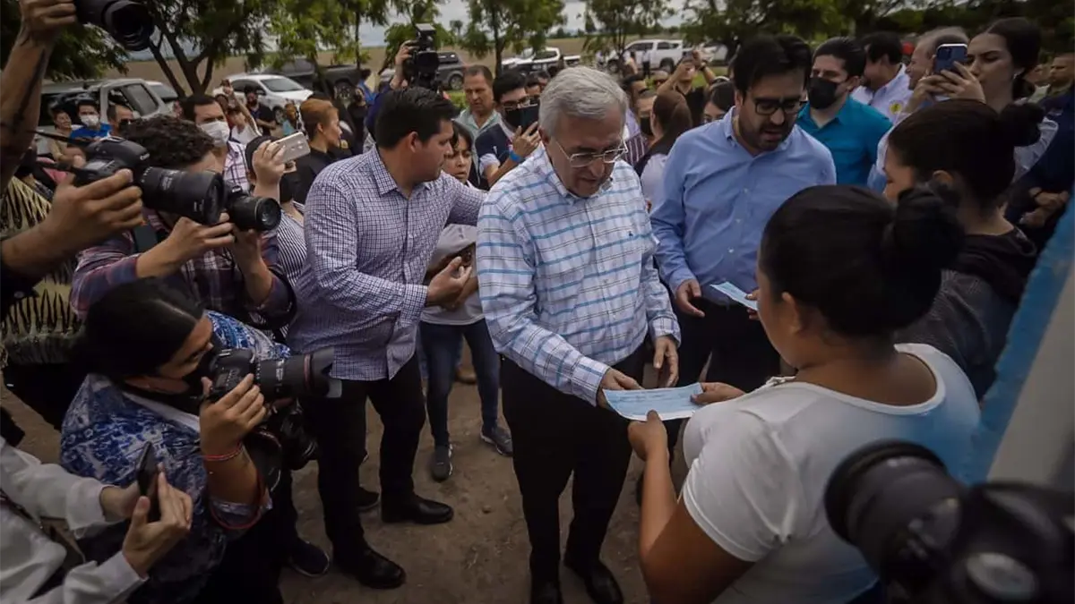 En el lugar estuvo presente el gobernador de Sinaloa, Rubén Rocha Moya, y el alcalde de Culiacán, Juan de Dios Gámez Mendivil, quienes le entregaron a 52 familias el recurso económico.