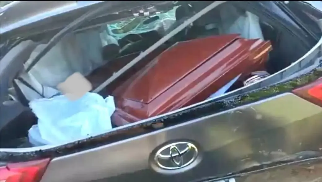 En el percance también terminó dañado el ataúd, incluso, en la escena del accidente se observaron las manos del muerto por fuera de la caja fúnebre.