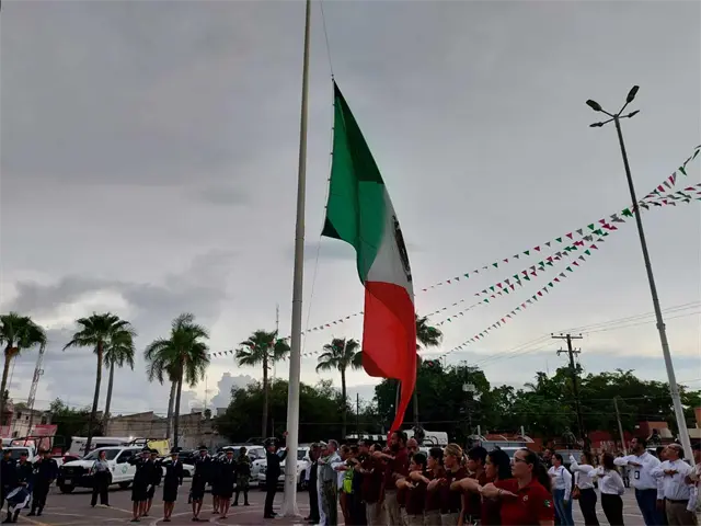 En señal de duelo nacional, por las víctimas de los terremotos de 1985 y del 2017, autoridades municipales, militares y civiles del municipio de Ahome llevaron a cabo, la mañana de este lunes, un izamiento de la bandera a media asta.