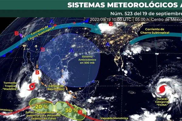 «Madeline» traerá lluvias puntuales intensas en Sinaloa, Nayarit y Jalisco, así como lluvias fuertes en Baja California Sur.