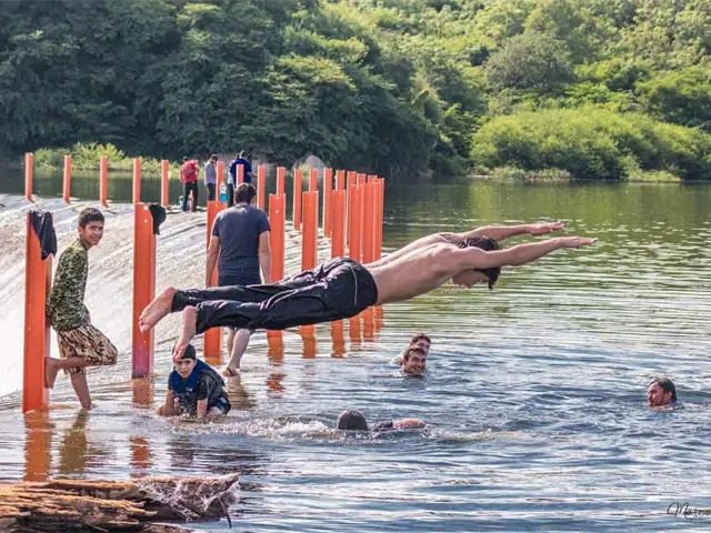 Algunos ciudadanos arriesgan la vida al pescar o nadar en vertedores la presa Sanalona.