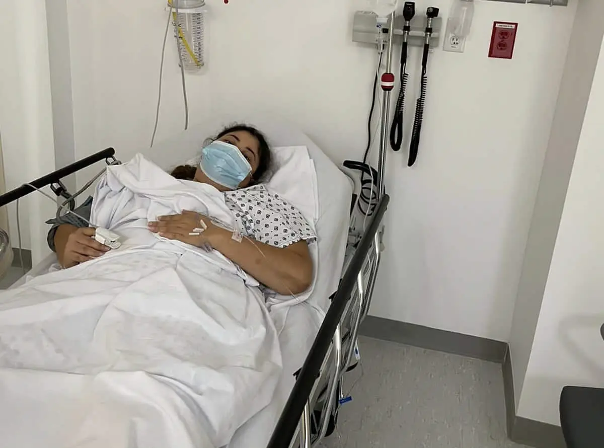 La joven, de 33 años, comentó que hace alrededor de una semana fue sometida a una cirugía de emergencia, por agua en los riñones y está en espera de una segunda operación, que se prevé que sea dentro de una mes.