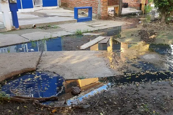 Una fuerte fuga de aguas negras tiene contra la pared a vecinos de los andadores Perico y Oso del Infonavit Alarcón, pues desde hace tres semanas sufren de enfermedades, malos olores y la molestia de mojarse los pies con agua sucia cada que salen de sus hogares.