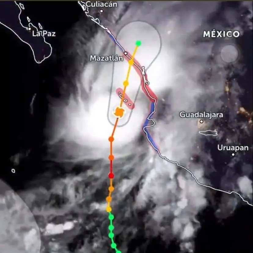 Cabe mencionar que, minutos antes de las 11 de la noche, el puerto de Mazatlán pasó a alerta naranja, debido a la cercanía de «Orlene».