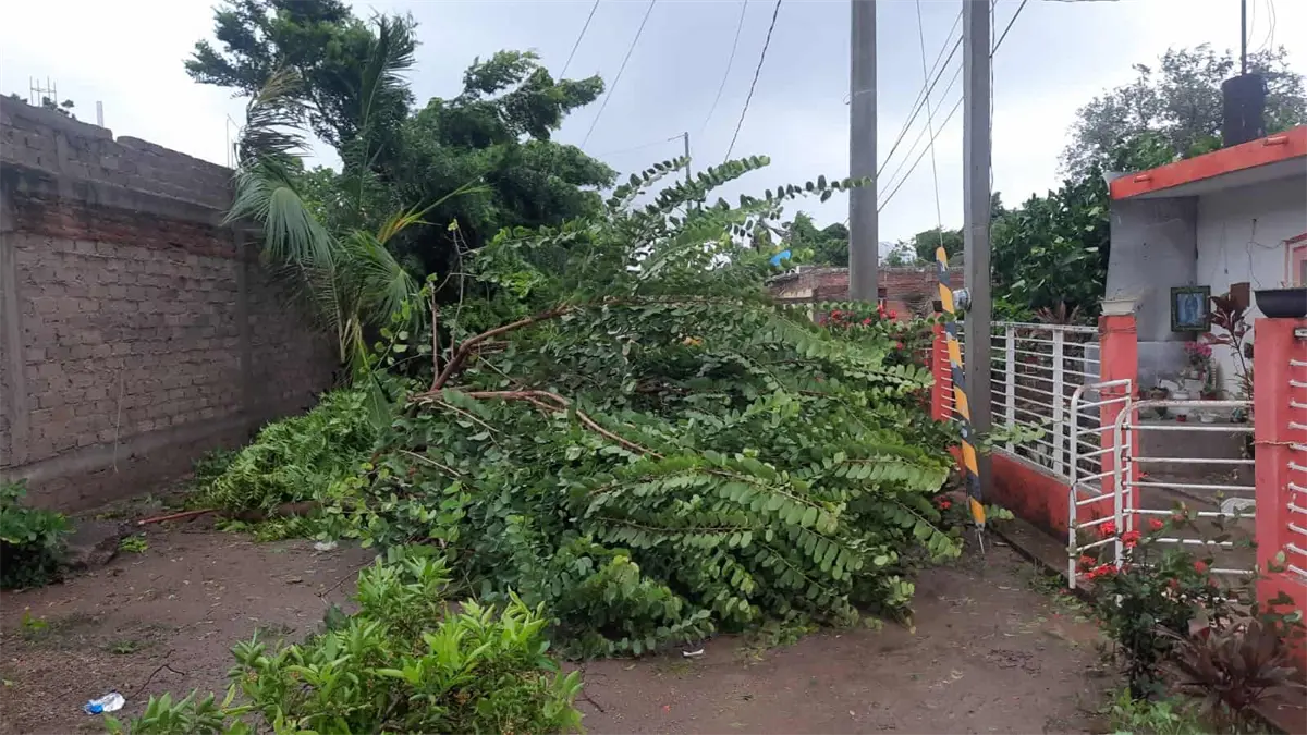 Las fuertes ráfagas de viento que todavía se sienten en la zona sur de Sinaloa por los efectos del huracán «Orlene», dejó árboles caídos y comunidades son energía eléctrica y en algunas otras zonas incómodas vía telefónica.