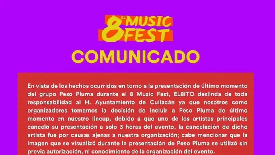 «8 Music Fest» deslinda al ayuntamiento por presentar a «Peso Pluma»