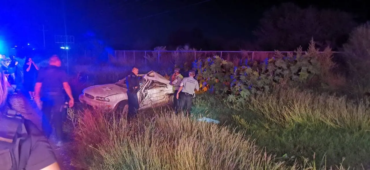 Un aparatoso accidente que terminó en la volcadura de un vehículo la noche de este miércoles, dejó como saldo un hombre muerto y otro más lesionado; aún se desconoce cómo ocurrió el hecho, pero se estableció que las víctimas regresaban de trabajar en una maquiladora.