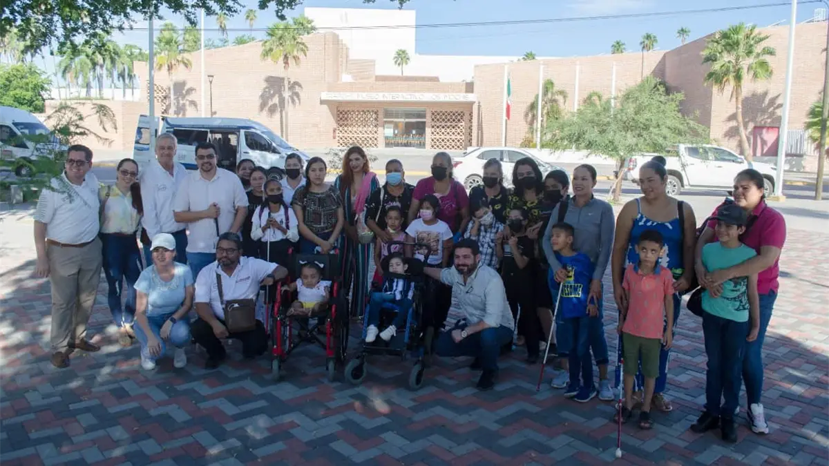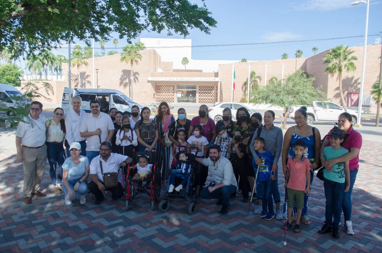 A bordo de los vehículos adaptados para traslado especial, esta mañana inició el programa «Ruta Azul» Inclúyeme, el cual lleva a 14 niños y niñas con capacidades diferentes a un recorrido turístico por el municipio de Ahome.