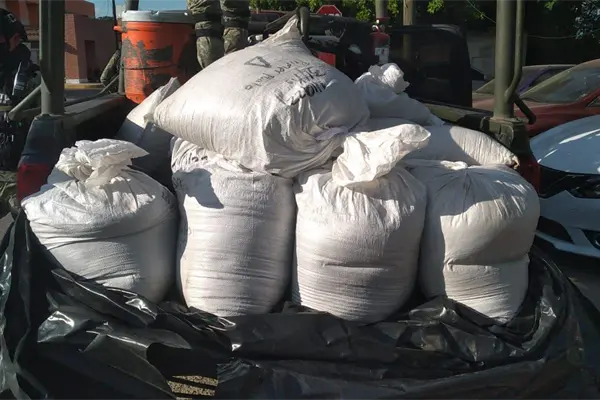 Los uniformados se detuvieron a inspeccionar más de cerca y descubrieron que se trataba de varios costales, en cuyo interior se encontró una sustancia blanca y cristalina con características similares a la de la metanfetamina, cuyo peso fue de aproximadamente 300 kilos.